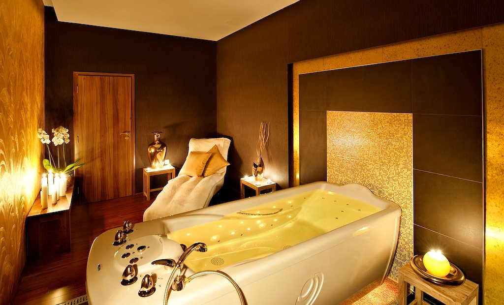 Procedúry sa začínajú oddýchom v zlatom kúpeli v liečivej turčianskej minerálnej vode, do ktorej nasypeme čiastočky pravého 24-karátového zlata. Kúpeľ prehreje vašu pokožku a umožní prechod výživných látok a zlata do hlbších vrstiev kože. Na posilnenie účinkov, vás následne zabalíme aj do unikátneho zlatého zábalu, kde bude vaša pokožka v priamom kontakte so zlatom.